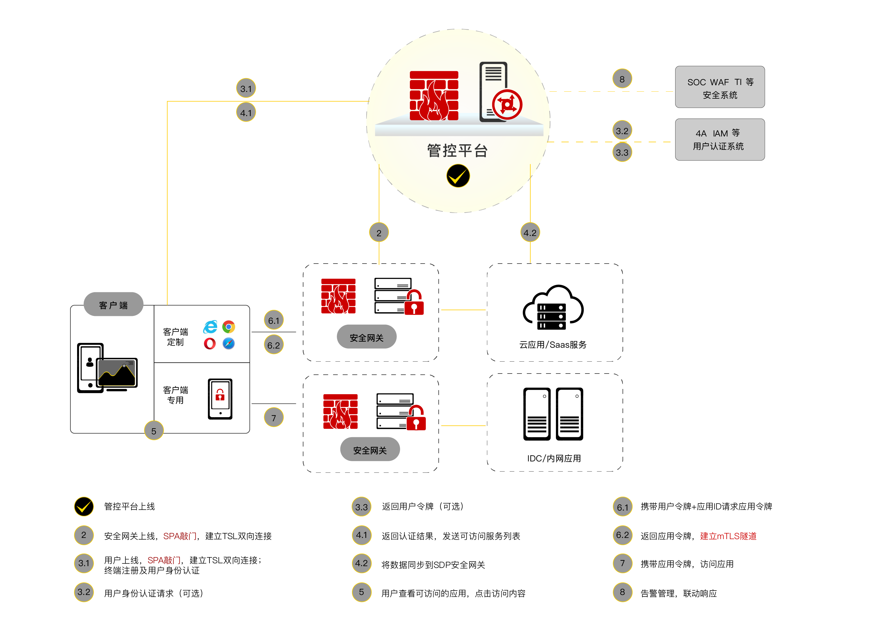 移动业务零信任安全网关,准照软件定义边界架构,采用单包敲门和安全隧道技术,通过对用户、设备、应用和网络进行安全可信访问、网络安全传输、持续信任评估和动态访问控制,保障用户在任意网络环境中都能够安全、高效、稳定地访问业务服务。