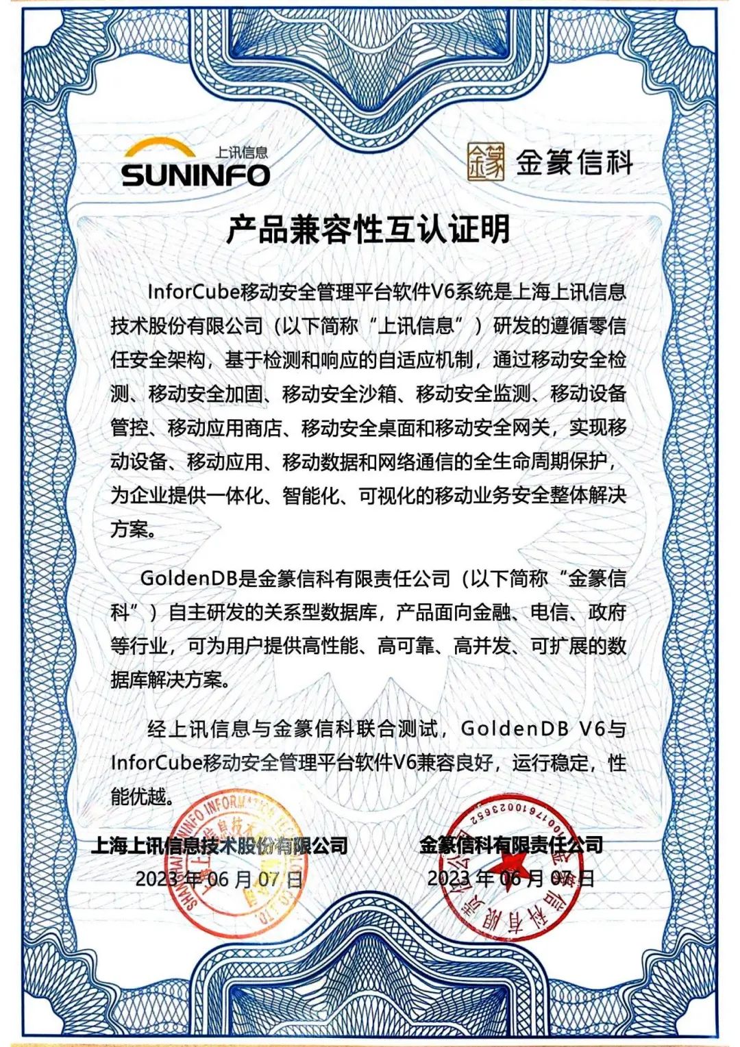 InforCube移动安全管理平台软件 V6与TDsql互认证明
