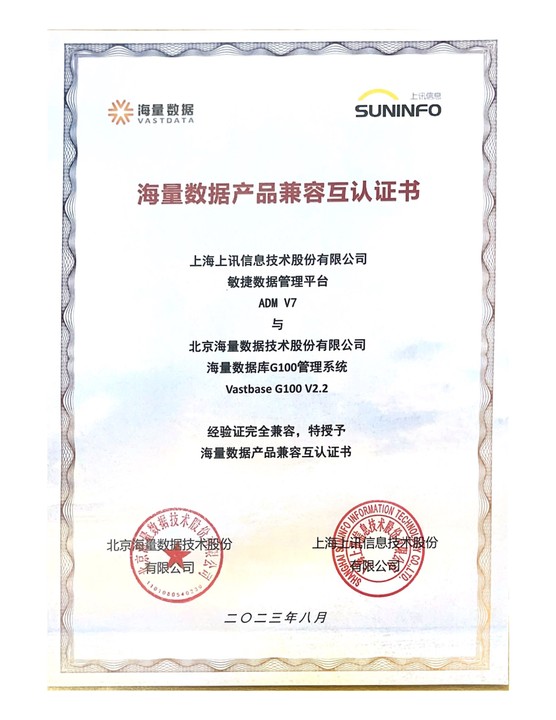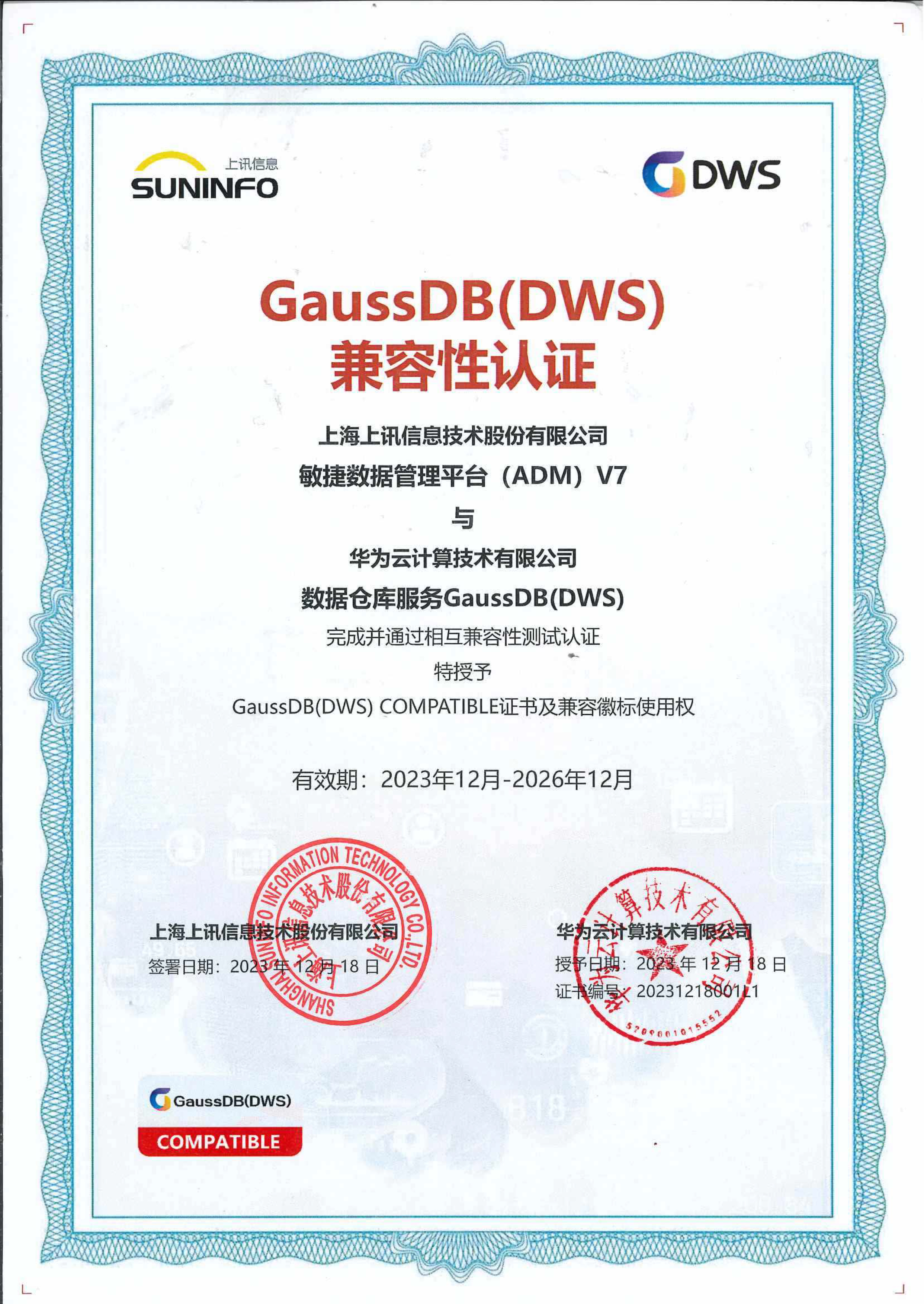 上讯敏捷数据管理平台(ADM)V7与华为GaussDB(DWS)产品兼容性证明
