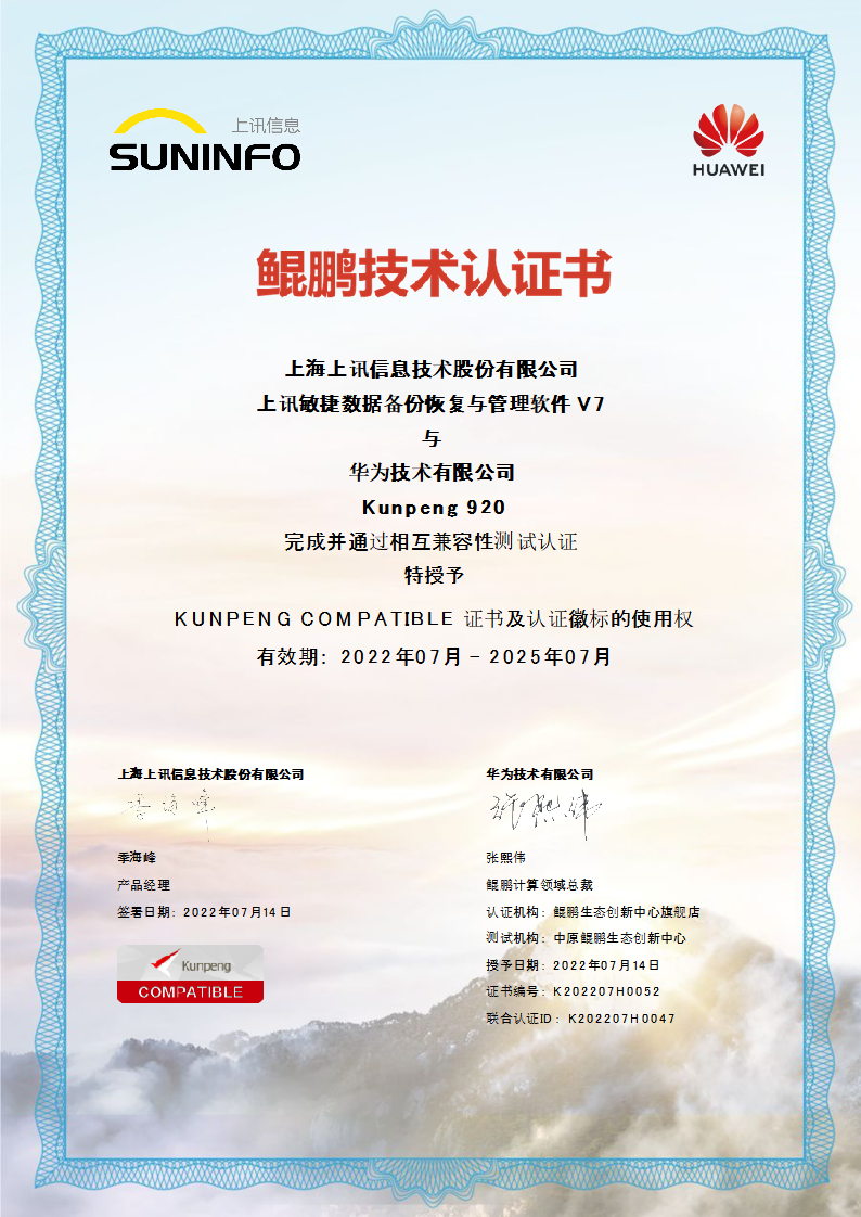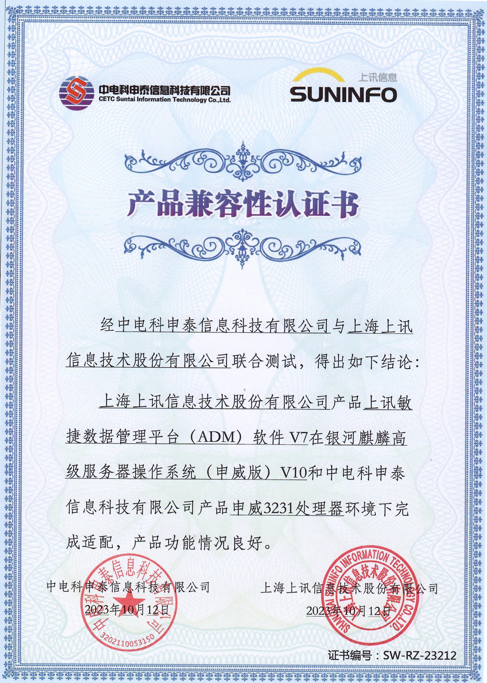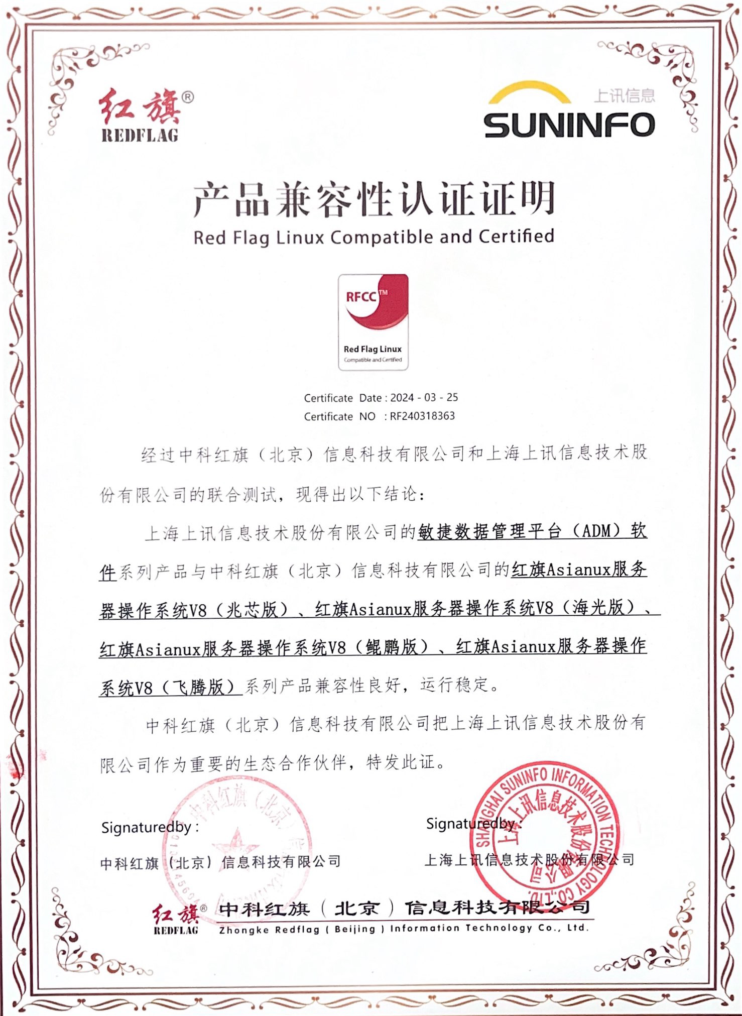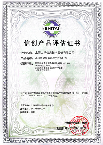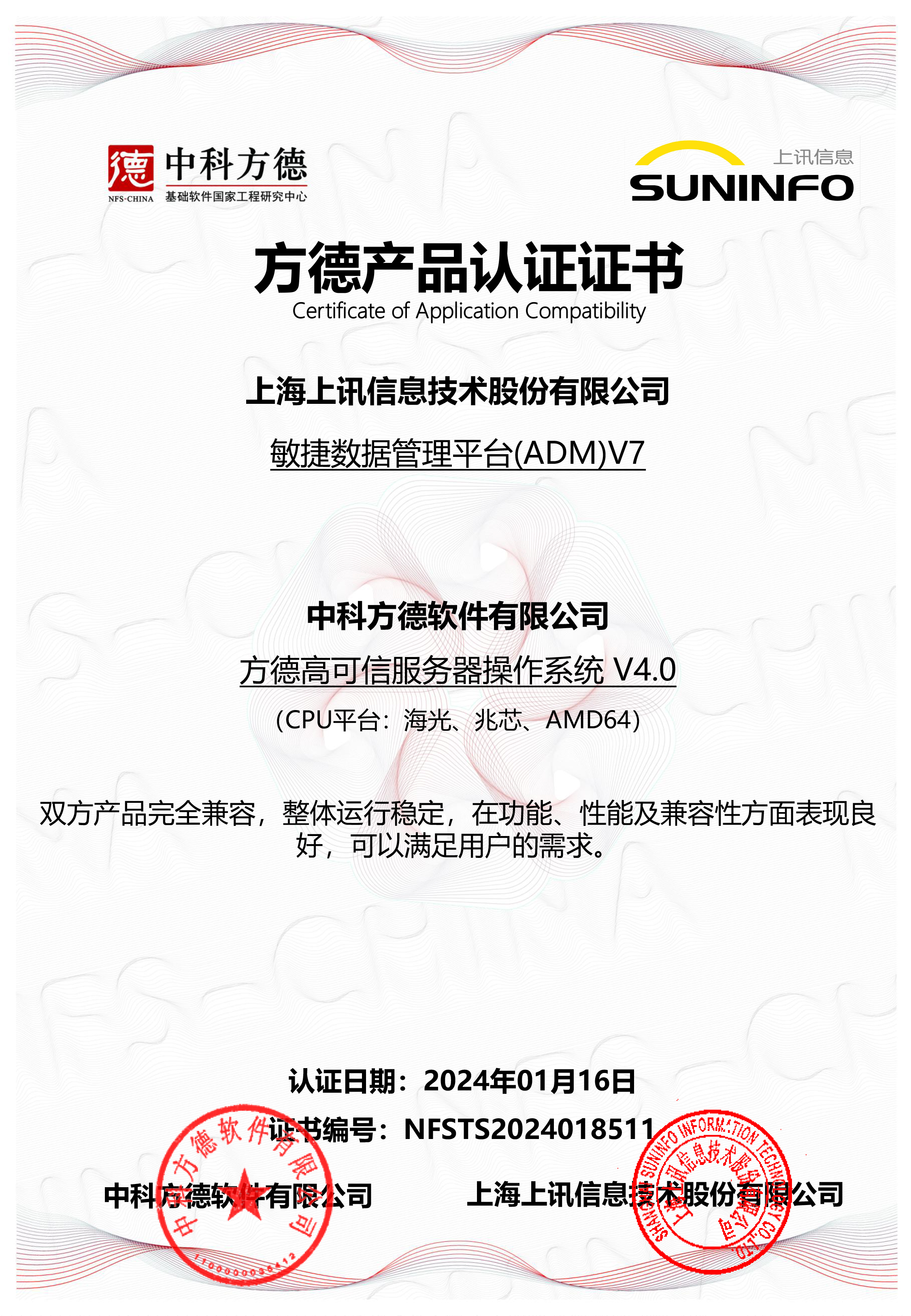 上讯敏捷数据管理平台(ADM)V7与方德高可信服务器操作系统V4.0兼容证明