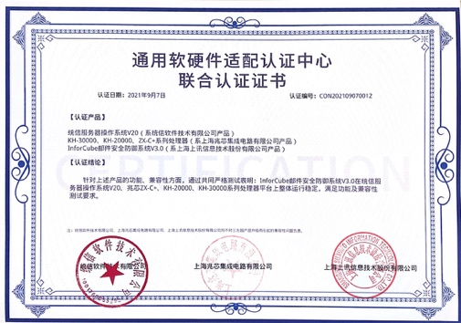 银河麒麟高级服务器操作系统V10兼容互认证明