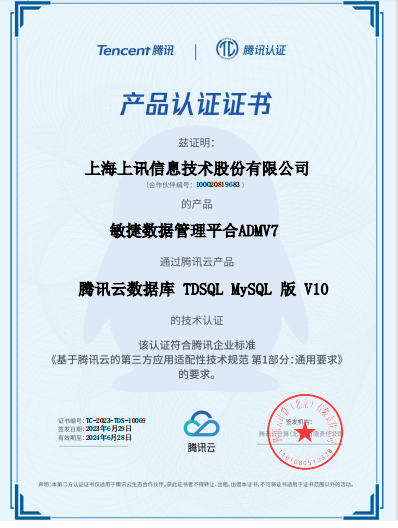 腾讯云数据库TDSQL MSQL版 V10 适配认证证书