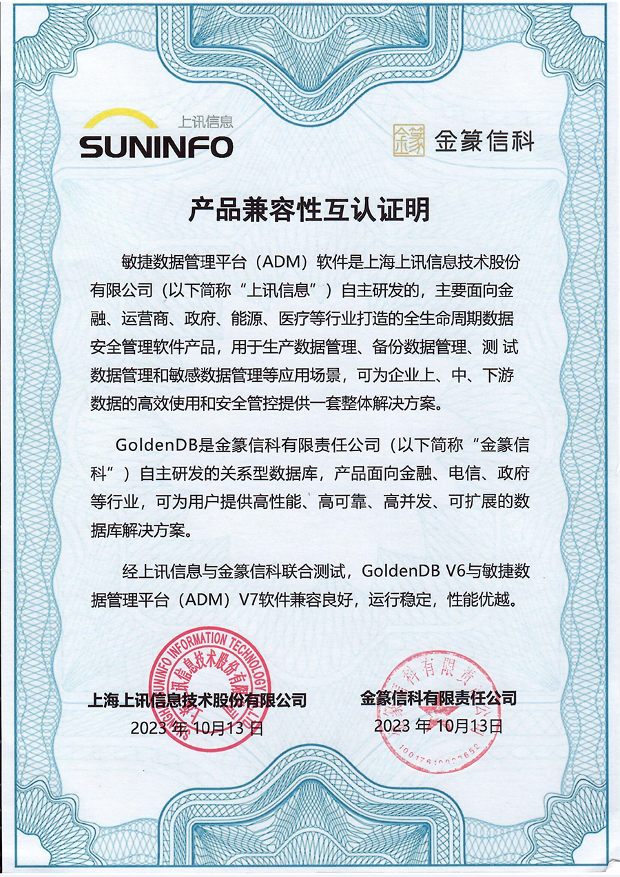 ADM软件与金篆信科GoldenDB数据库兼容互认证
