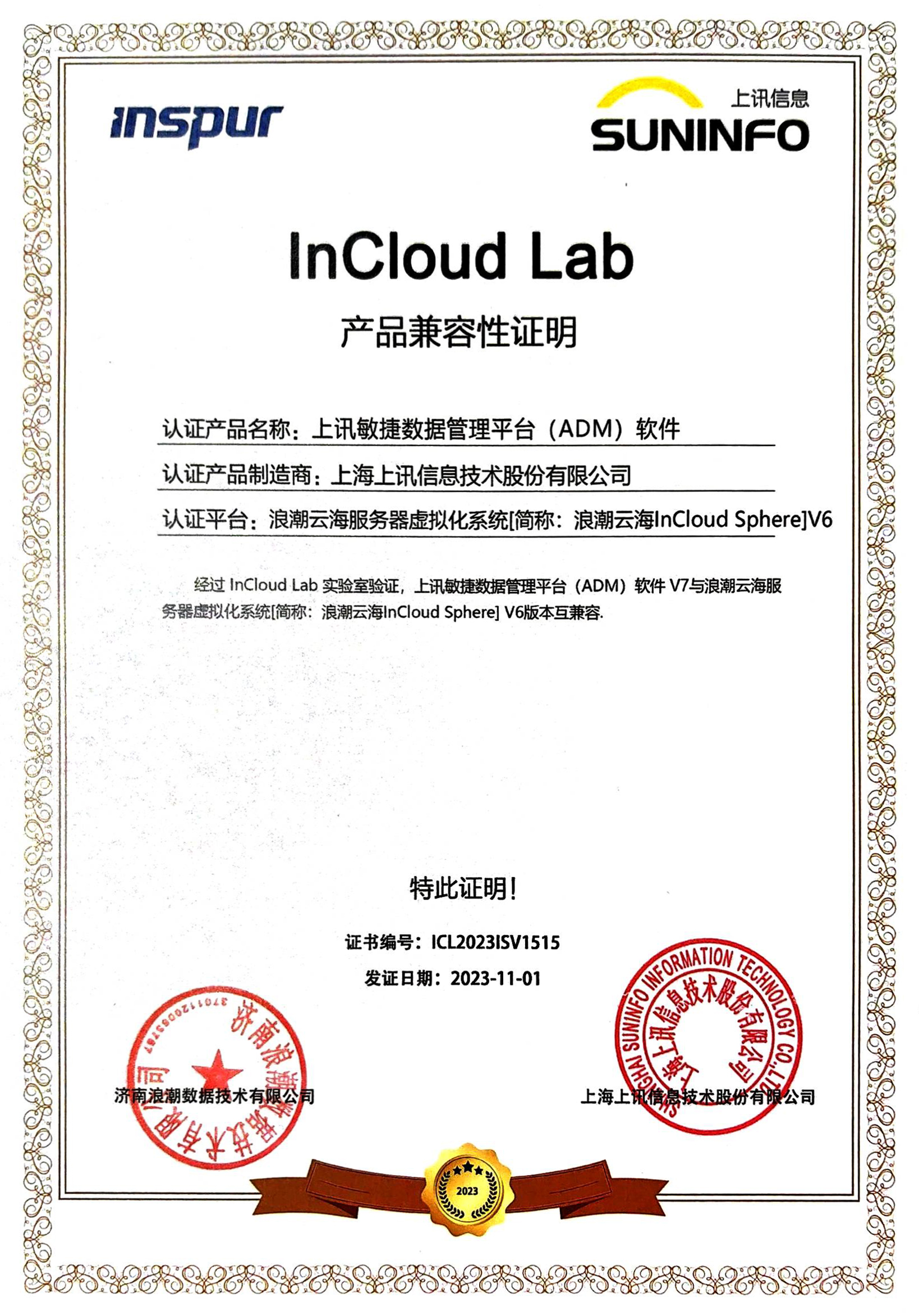 上讯敏捷数据管理平台(ADM)软件与浪潮云海服务器虚拟化系统兼容性证明